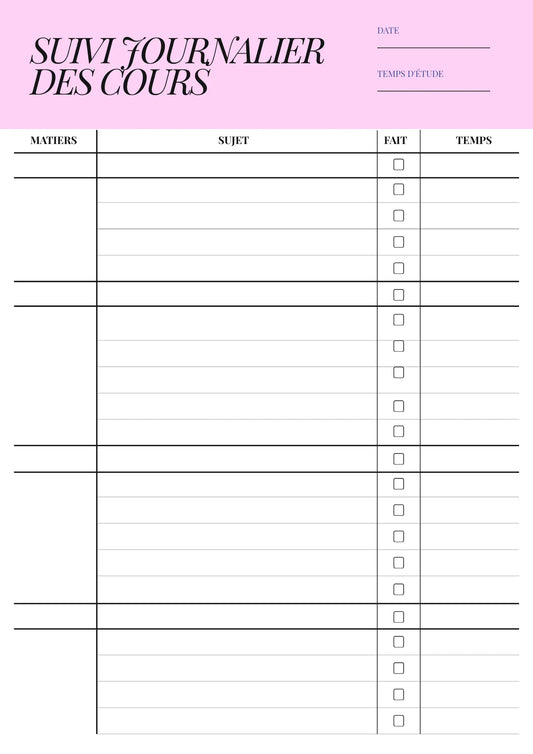 Du planner quotidien au suivi budgétaire, en passant par l'organisation des tâches ménagères et la planification mensuelle : trouvez les outils parfaits pour maîtriser chaque aspect de votre vie.